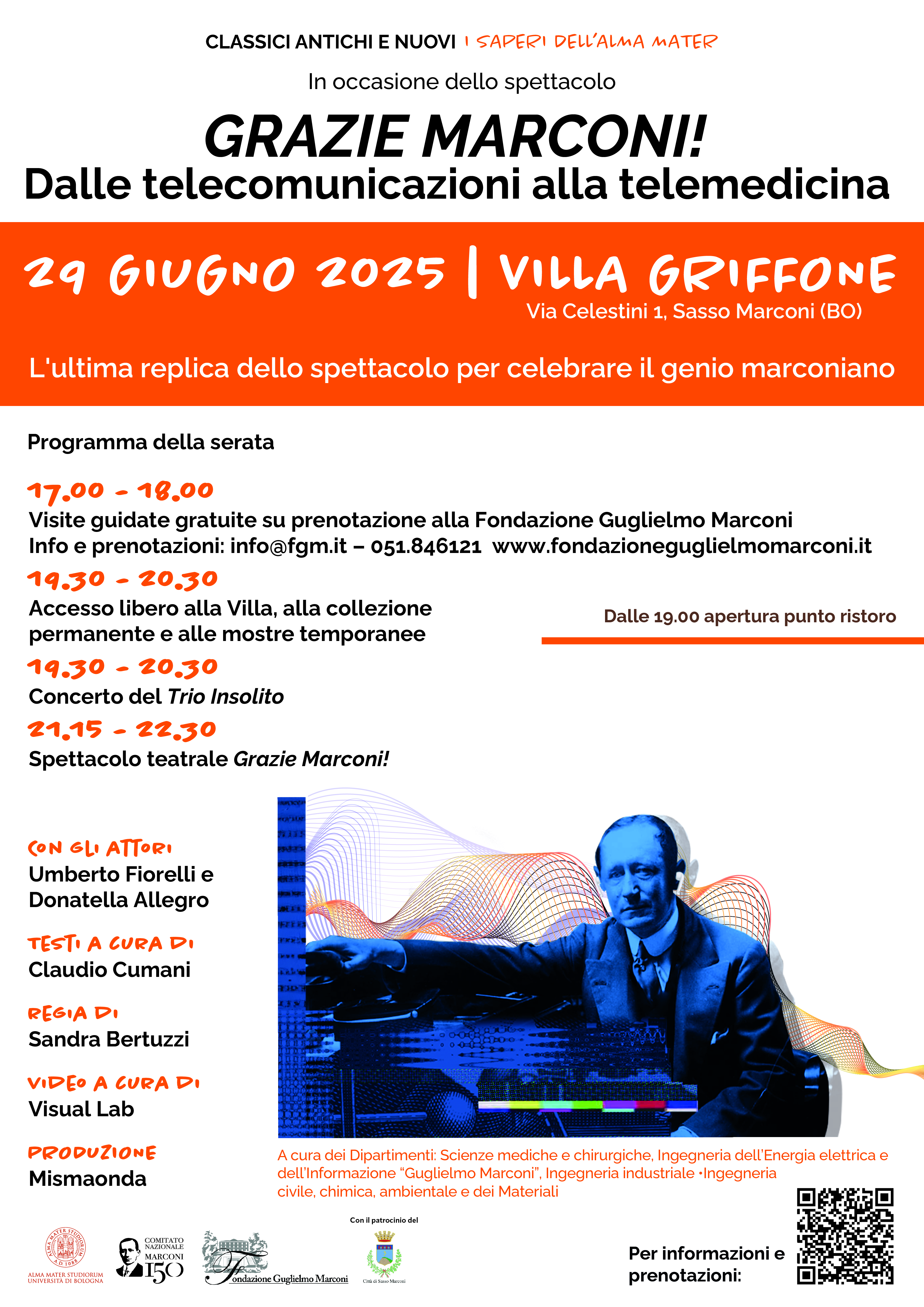 Dopo il successo delle edizioni di marzo e aprile, dedicate soprattutto alle studentesse e agli studenti delle scuole, l’appuntamento di giugno di “Grazie Marconi!” è rivolto a tutta la cittadinanza, per avvicinare il pubblico di ogni età alla straordinaria eredità scientifica di Guglielmo Marconi.