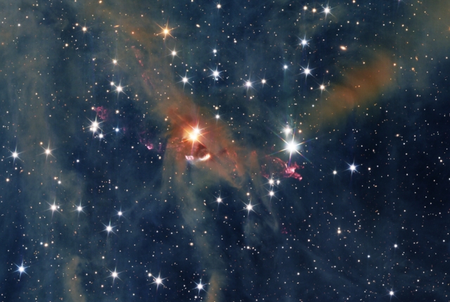 Lo scatto riprende una nebulosa parte di una cosiddetta "nube oscura", denominata LDN 1641, che si trova nella costellazione di Orione, a circa 1.300 anni luce dalla Terra, all’interno di un vasto complesso di nubi di gas e polvere in cui si stanno formando nuove stelle.