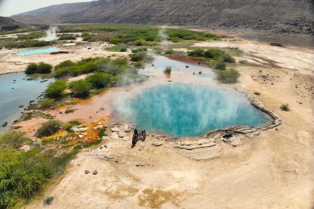 La varietà di colori accesi che contribuiscono a dare un aspetto alieno al campo geotermale di Allalobad deriva dall’attività biologica che fiorisce attorno alle pozze di acqua calda, alle fumarole e ai geyser. A ogni colore corrisponde una specie microbica capace di sopravvivere a particolari condizioni e temperature estreme.