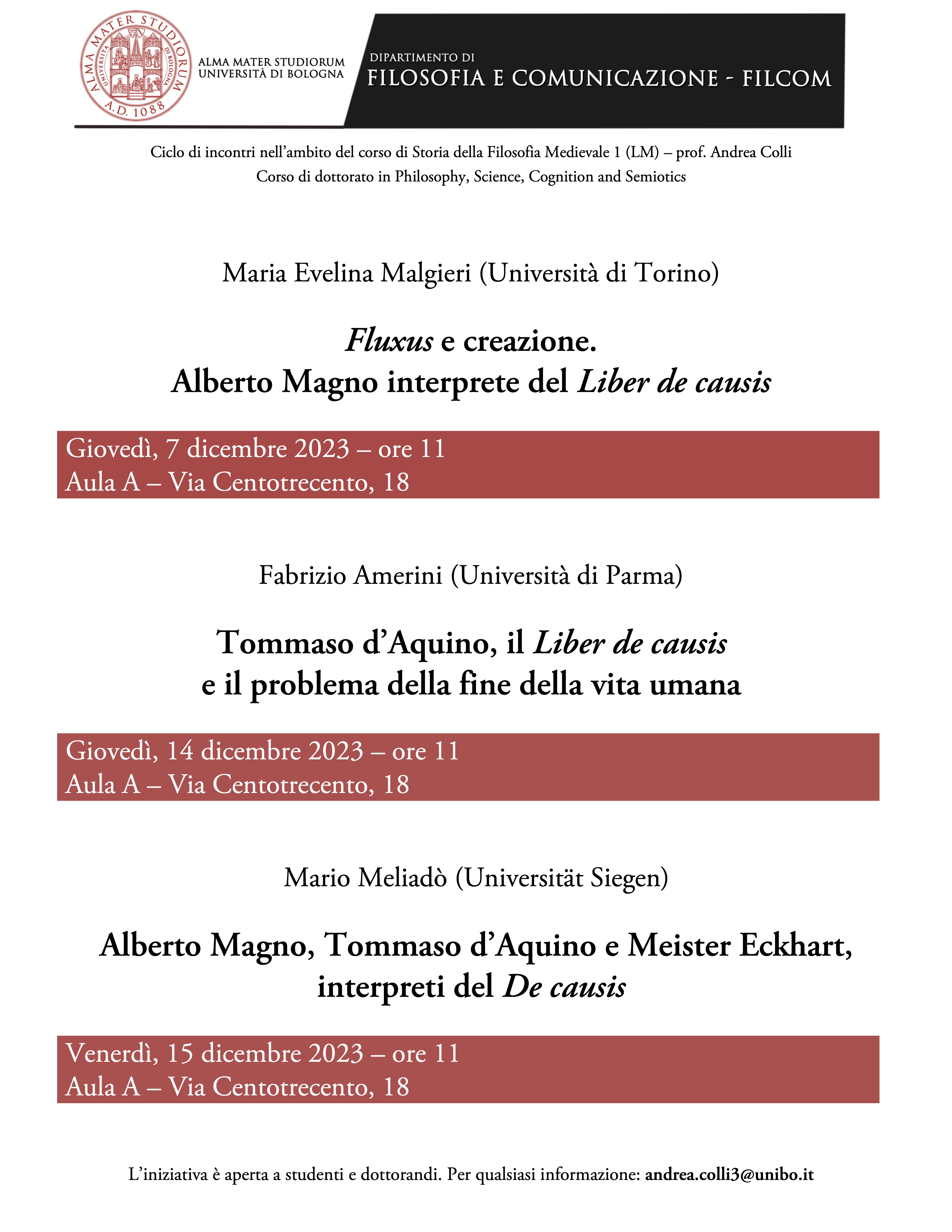 Home Agenda eventi 2023 Tommaso d'Aquino, il Liber de causis e il problema della fine della vita umana