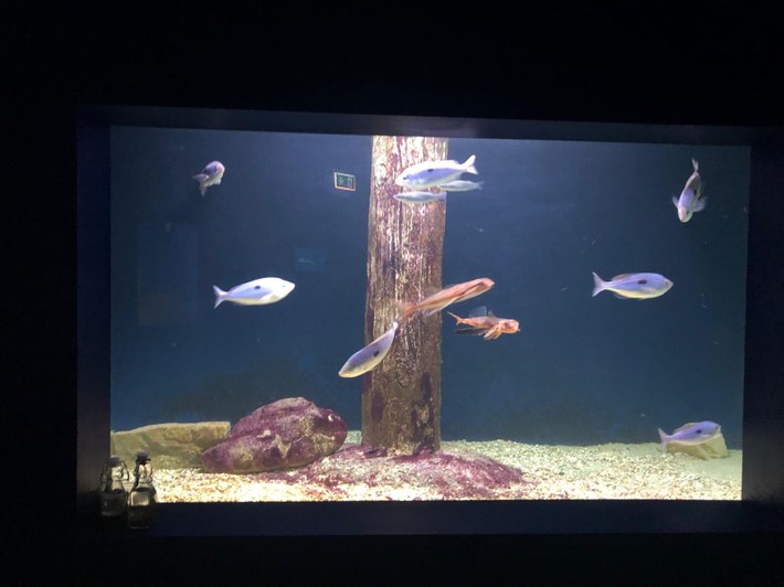 The largest and most spectacular tank is RIVIERA DEL CONERO (25,000 litres), representing the high, rocky coast of the central Adriatic. It recreates the Trave rock formation and hosts a pelagic environment populated by marine species of various sizes and colours.