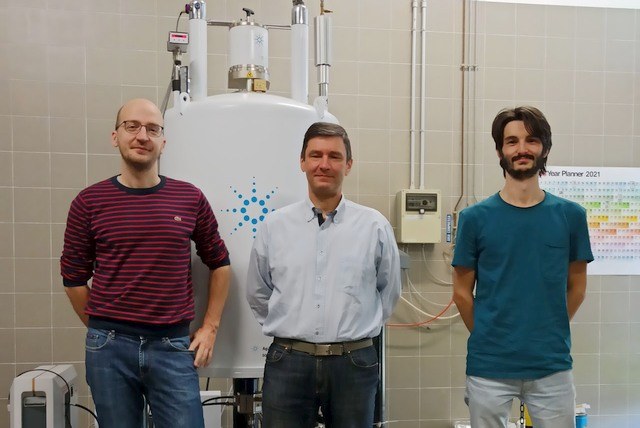 From left to right: Massimo Baroncini, Alberto Credi, and Stefano Corra; the nuclear magnetic resonance spectrometer is in the background