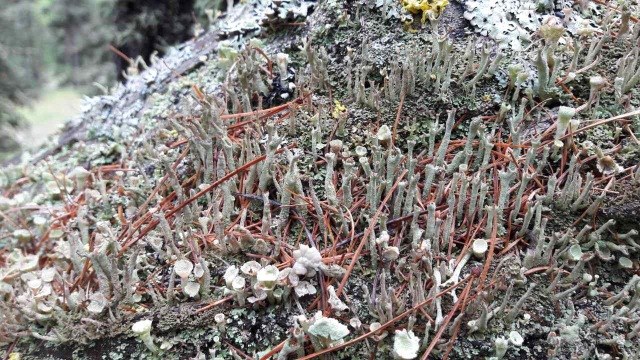 Communities of lichens of the genus Cladonia that frequently grow on dead wood, especially in forests less disturbed by human action