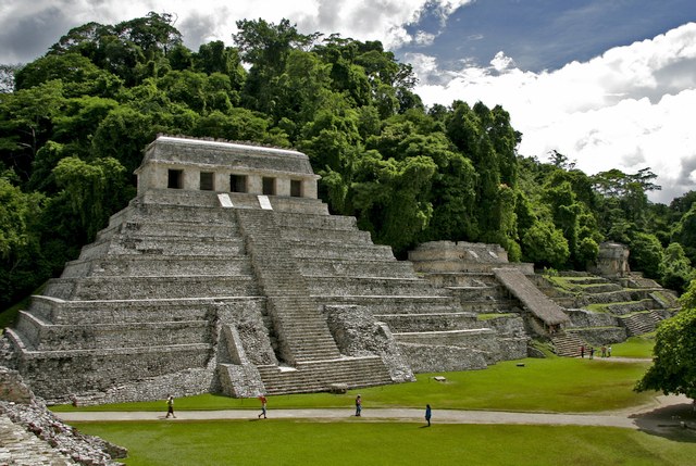 Mayan temple in the archaeological site of Palenque, in the Mexican state of Chiapas, Mexico