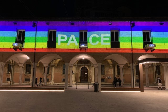 Every evening in the heart of Bologna’s university district, Piazza Scaravilli lights up with the colours of the Ukrainian and Peace flags. A play of colours makes one flag turn into the other, as a gesture of solidarity with the people of Ukraine. This is just one of the actions taken by the University of Bologna, which is fully committed to supporting students and members of the academic community who are victims of the war in Ukraine, and, more generally, to the whole population of Ukraine.