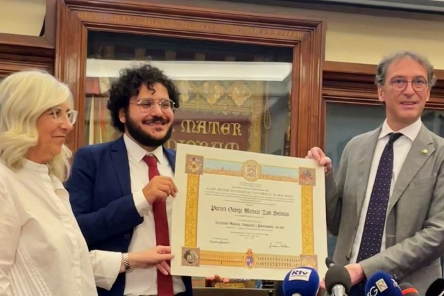 Patrick Zaki came back to the University of Bologna. On his return to Italy, Patrick was welcomed by Rector Giovanni Molari and Professor Rita Monticelli. He arrived this evening at the Rectorate of the University of Bologna where he was presented with the degree certificate in the Erasmus Mundus Master's Degree in Women's and Gender Studies.