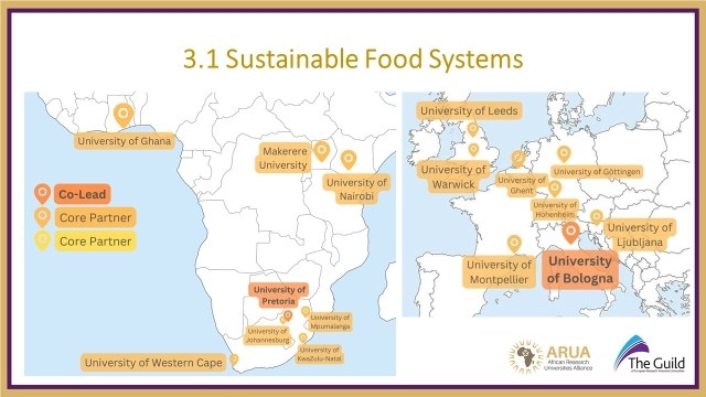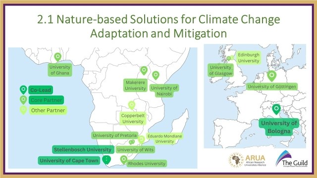 Due dei nuovi Cluster approvati dall’assemblea congiunta tra The Guild e ARUA saranno coordinati dall’Università di Bologna: "Nature-based Solutions for Climate Change Adaptation and Mitigation", insieme all’Università di Cape Town e all’Università di Stellenbosch, e “Sustainable Food Systems”, insieme all’Università di Pretoria. Entrambi i progetti sono stati apprezzati per l'elevata qualità scientifica, la visione a lungo termine, e impegno per uno sviluppo equo e il rafforzamento delle capacità.
