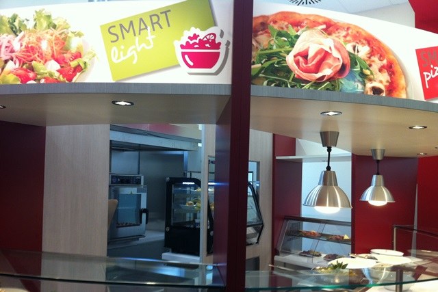 La realizzazione del punto ristorativo è stata curata da ER.GO, che ha affidato la progettazione ed i lavori, il cui costo complessivo, nell’ordine di € 298.000 è sostenuto da Azienda e Università. L’allestimento dei locali è stato eseguito dal gestore, la Società Elior Concerta SpA, con un investimento di 97.000 euro.