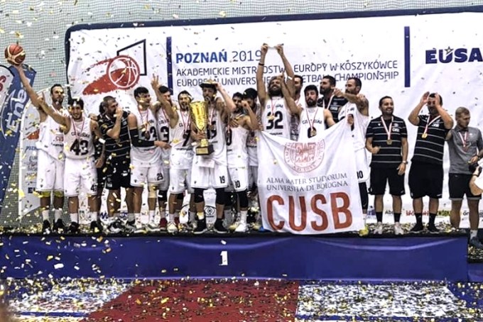La favola del Cus Bologna continua allo CityZen Sports Center di Poznan (Polonia). Prima della partenza (alla presenza del partner Macron e dello sponsor Matteiplast) il rettore Francesco Ubertini era stato chiaro. Aveva chiesto un miracolo o quasi al Cus Bologna: il terzo titolo europeo universitario nella pallacanestro, per emulare le gesta dei lituani. E, come per magia - ma in realtà dietro c’è il grande lavoro portato avanti dal presidente Piero Pagni e dal club manager biancorosso, Federico Panieri - l’Alma Mater Studiorum torna per il terzo anno consecutivo sul tetto d’Europa. Dopo Miskolc 2017 e Coimbra 2018 ecco Poznan 2019, sempre gli Europei universitari Eusa di pallacanestro.