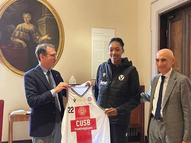 Ad accogliere Olbis Futo Andrè nella grande famiglia sportiva dell'Alma Mater è stato il Rettore Giovanni Molari, che l'ha incontrata in Rettorato insieme a Luca Baraldi, CEO di Virtus Segafredo Bologna, e al Direttore Generale del Cus Bologna, Federico Panieri.