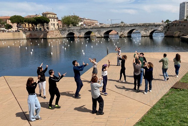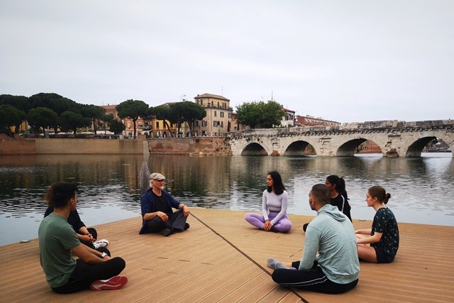 Attraverso le parole e le relative pratiche corporee, nel corso dei due seminari condotti da Gaia Germanà (Muvet) e da Alessandro Fattorini (Studio Alexander) presso la Piazza sull’acqua sotto il millenario Ponte di Tiberio a Rimini, è stato fornito conforto e sostegno agli studenti, provati prima dal periodo pandemico e successivamente anche dall’orrore della guerra.