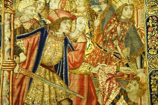 La generosità di Barbieri è visibile anche nei due arazzi di Bruxelles che riproducono due episodi illustrati su un grande arazzo a retablo conservato in Spagna. Uno mostra, tra due colonne sui margini laterali, un uomo che minaccia con una spada sguainata un avversario inginocchiato a terra, con altre figure maschili e femminili alle loro spalle. L’altro arazzo propone una scena similare, ma con un uomo che, con la spada sollevata, assale una donna che gli si lancia contro, davanti a un semicerchio di figure.