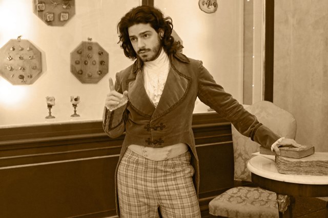 Emanuele Marchesini interpreta Percy Shelley nella Sala delle Cere Anatomiche Morandi-Manzolini del Museo di Palazzo Poggi, durante l’evento Frank is Back “dal vivo”