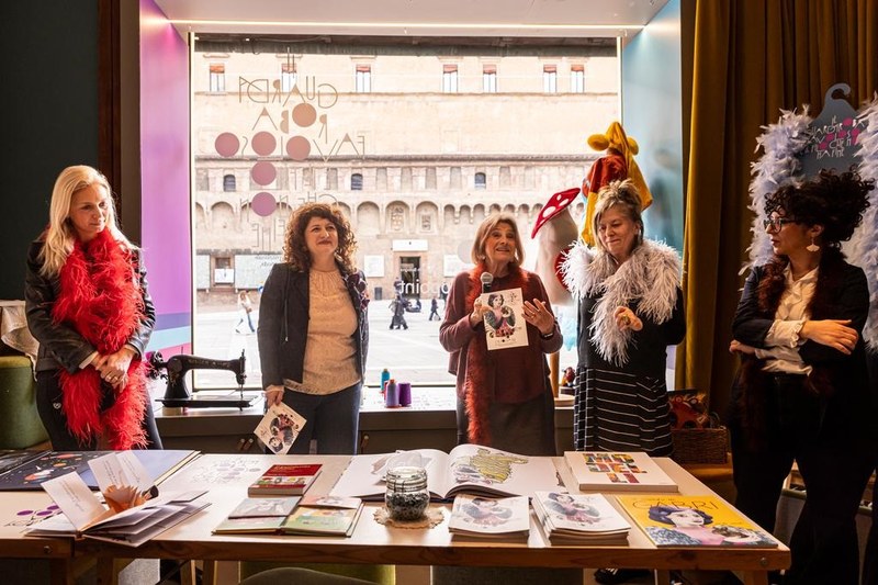 Presso Extrabo il 20 aprile alle 17:30 Federica Zanetti docente Unibo, con Serena Ballista, autrice di per Mille camicette al giorno illustrato da Sonia Maria Luce Postini per Orecchio Acerbo editore, assieme alle lavoratrici del Gruppo La Perla, Stefania Prestopino e Elena Castano, dell'Associazione Unicheunite.