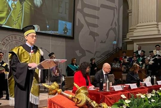 È intervenuta poi la Ministra dell'Università e della Ricerca, Anna Maria Bernini, che ha lasciato la parola all'ospite d'onore della cerimonia: Koen Lenaerts, Presidente della Corte di giustizia dell'Unione europea.