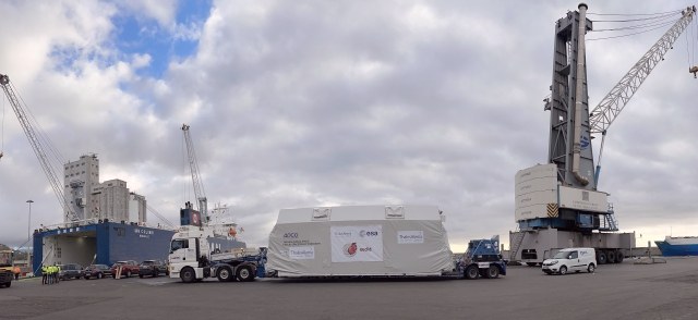 Euclid, il nuovo satellite dell'Agenzia Spaziale Europea (ESA), ha iniziato il suo viaggio a bordo di un cargo salpato dal porto di Savona. Prossima tappa sarà la rampa di lancio di Cape Canaveral, in Florida, da dove Euclid lascerà la Terra il prossimo luglio per posizionarsi a circa 1,5 milioni di chilometri dal nostro pianeta. Il suo obiettivo è realizzare una mappa 3D della distribuzione della materia nell’universo utilizzando la posizione di miliardi di galassie, con lo scopo finale di fare luce su materia oscura e l'energia oscura, che costituiscono circa il 95% del contenuto dell’Universo, ma di cui ancora non conosciamo la natura.