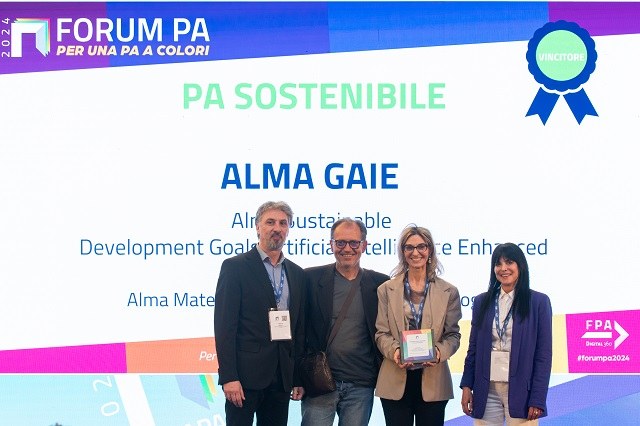 Primo premio di PA a colori 2024, nella sezione PA sostenibile, per il progetto ALMA GAIE - Sustainable Development Goals Artificial Intelligence Enhanced, presentato dall’Università di Bologna. Organizzato nell’ambito dell’annuale PA Forum con l’obiettivo di valorizzare le migliori soluzioni per una Pubblica Amministrazione pronta ad affrontare le sfide del futuro, “PA a colori" ha visto quest’anno la presentazione di oltre cento candidature, suddivise per sette ambiti.