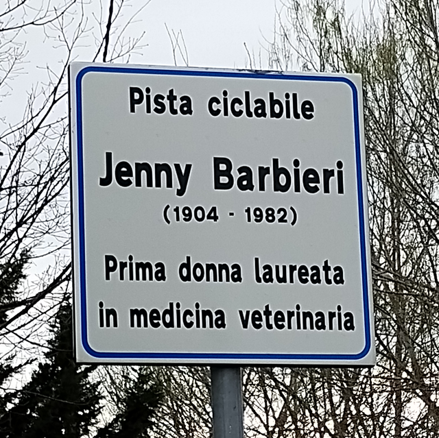 Jenny Barbieri (1904 –1982) è stata la prima donna italiana a laurearsi in Medicina veterinaria. Salsomaggiore Terme, la sua città natale, la celebra intitolandole una pista ciclabile. Un tributo a chi ha fatto la storia di questa disciplina, non per aver creato una Scuola, ma per avere aperto la strada - quasi un secolo fa - a moltissime donne medico veterinarie.