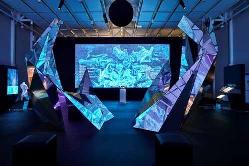 Si parte da due grandi installazioni centrali: le mani chiuse, emblema della riflessione sulla propria origine e interiorità, e quelle aperte, che rappresentano invece l’esplorazione e la conoscenza del mondo circostante. Le mani, come grandi origami specchianti, sono un gioco di simmetria e sono sviluppate a partire dalla digitalizzazione della mano destra del fondatore Marino Golinelli: al termine della mostra, resteranno esposte all’Opificio come simbolo del cammino da lui impresso alla Fondazione, un cammino che, partendo dal passato, possa aprirsi a quel futuro che appartiene alle giovani generazioni.