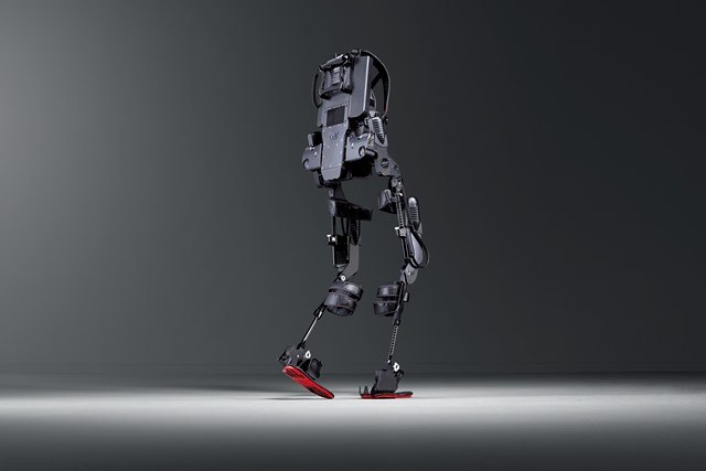 Ekso è un esoscheletro robotizzato applicato all’apparato locomotore che consente la deambulazione a persone che a seguito di una lesione midollare hanno perso l’uso degli arti inferiori, grazie ad una serie di motori indipendenti che governano i movimenti delle anche e delle ginocchia, sotto il controllo di un sistema computerizzato indossato come uno zaino. Un sensore che percepisce i movimenti del tronco e i relativi spostamenti di baricentro, permette a chi lo indossa di controllare l’azione e determinare l’esecuzione di un passo di lunghezza costante.