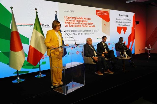 La Prorettrice Vicaria, Simona Tondelli, ha inoltre portato i saluti istituzionali di Ateneo all’evento "United Nations University on AI and the impact of AI on the future of our societies", ribadendo l'importanza della collaborazione internazionale di fronte a una delle sfide più decisive del nostro tempo, e cioè comprendere e governare l’impatto dell’intelligenza artificiale sul futuro delle nostre società.