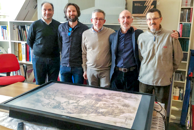 Il team di ricercatori dell'Università di Bologna al lavoro sulla scansione digitale del disegno