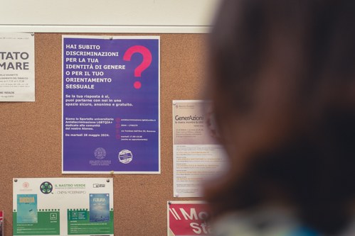 Lo sportello universitario antidiscriminazione LGBTQIA+ è gratuito e offre colloqui individuali in un ambiente protetto, ascolto telefonico, informazioni sui servizi, le figure e gli organismi istituzionali dell’Ateneo, la possibilità di interazione con la rete dei servizi del territorio e dell’associazionismo locale, supporto psicologico e informazioni di base sugli aspetti legali.