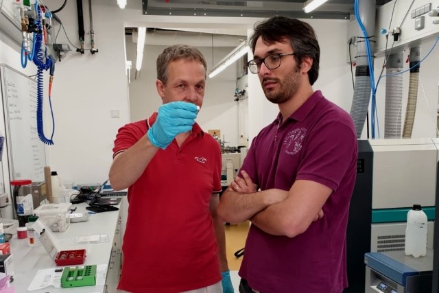 Wolfgang Müller e Federico Lugli al lavoro sull'analisi dei reperti