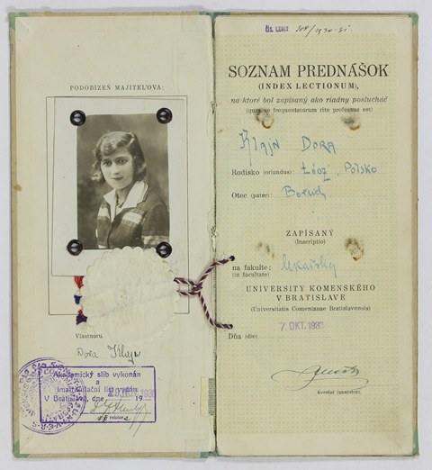 Il padre, che aveva un piccolo negozio di tessuti, poté assicurare alla figlia una buona istruzione nel migliore istituto privato della città, noto per il suo orientamento progressista. Volendo continuare gli studi superiori in Medicina, Dora si trasferì a Bratislava, ove nel 1919 era stata aperta una Facoltà di Medicina nella nuova Università Comenio, e vi soggiornò per un biennio.
