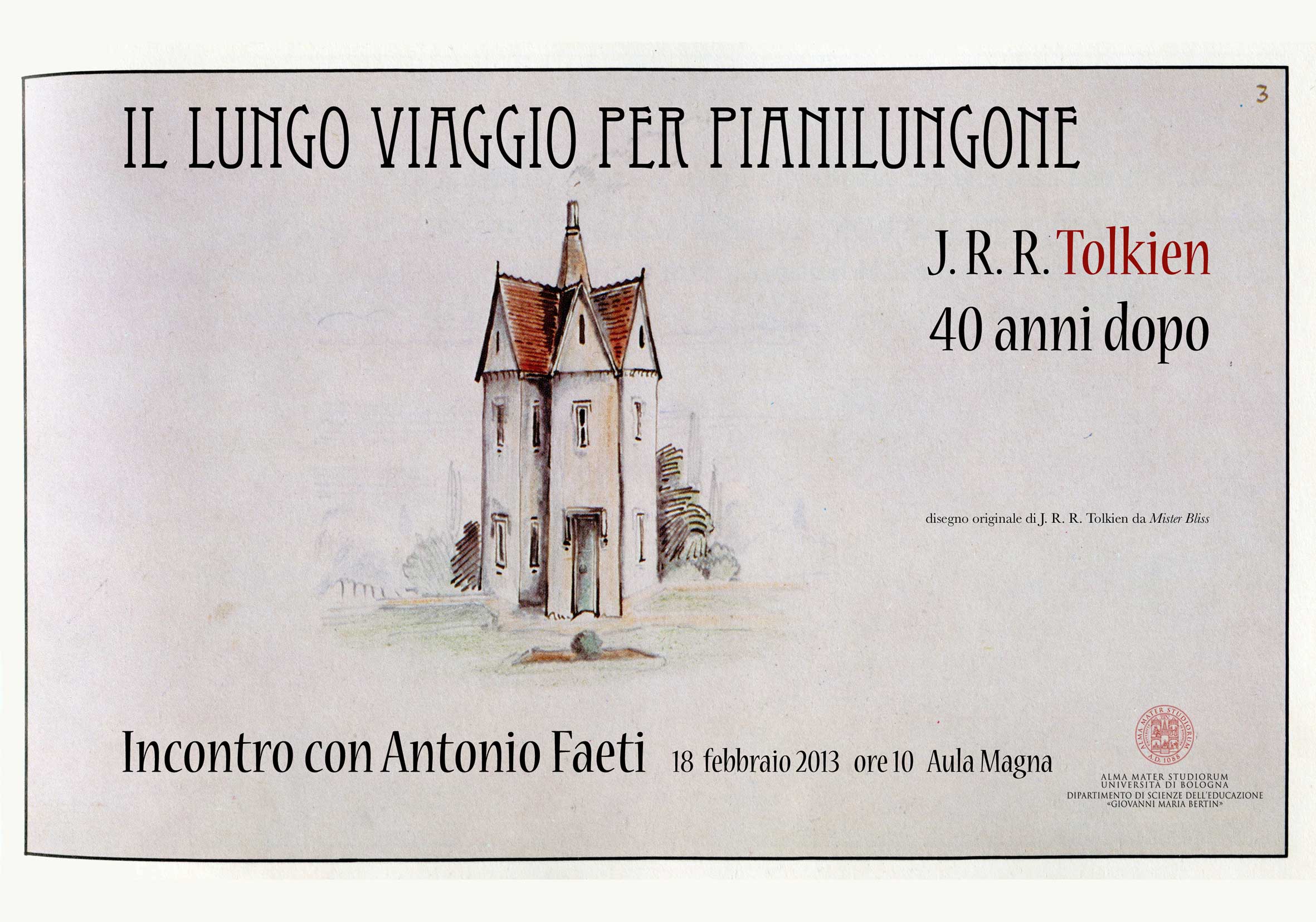 Se ne andava quarant'anni fa J.R.R. Tolkien, il grande scrittore inglese autore di alcuni dei più noti capolavori della letteratura fantasy, come "Il Signore degli Anelli" e "Lo Hobbit". Il Dipartimento di Scienze dell'Educazione lo ricorda con un incontro in programma lunedì prossimo, 18 febbraio, intitolato "Il lungo viaggio per Pianilungone. J.R.R. Tolkien quarant'anni dopo". Protagonista della conferenza, che si terrà a partire dalle 10 nell'Aula Magna "Piero Bartolini" (via Filippo Re, 6 - Bologna), sarà Antonio Faeti, a lungo docente all'Università di Bologna e primo Ordinario della cattedra di Letteratura per l'infanzia in Italia.