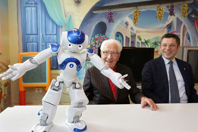 E' stato presentato stamattina, al Sant'Orsola, alla presenza della famiglia Golinelli e insieme alla direttrice del Policlinico Antonella Messori, al Rettore Francesco Ubertini e all'equipe che sarà coinvolta nel progetto, il "robot per imparare a riconoscere – e ad accettare - le emozioni negative". Si chiama Marino, come Marino Golinelli che insieme alla moglie lo ha donato all’Unità operativa di Pediatria diretta dal professor Andrea Pession. Da oggi farà compagnia ai piccoli pazienti del Policlinico e sarà protagonista di un progetto di ricerca assolutamente innovativo.