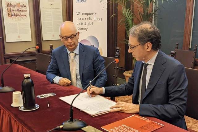 Il Rettore dell'Università di Bologna Giovanni Molari e Giuseppe Di Franco, Ceo di Atos Italia, hanno siglato, stamattina in Rettorato, un accordo di collaborazione di cinque anni per dare il via allo sviluppo congiunto di progetti di valore strategico nell’ambito di iniziative di valenza locale (gemello digitale di Bologna), nazionale (PNRR) ed europeo (Digital Europe).