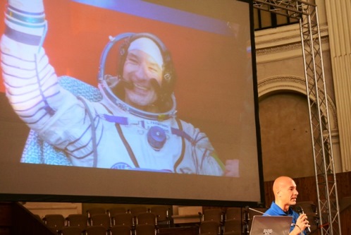 L'astronauta dell'Agenzia Spaziale Europea ospite dell'Università di Bologna ha raccontato i suoi 166 giorni in orbita davanti a un'Aula Magna di Santa Lucia gremita soprattutto di studenti, delle scuole superiori e dell'Alma Mater